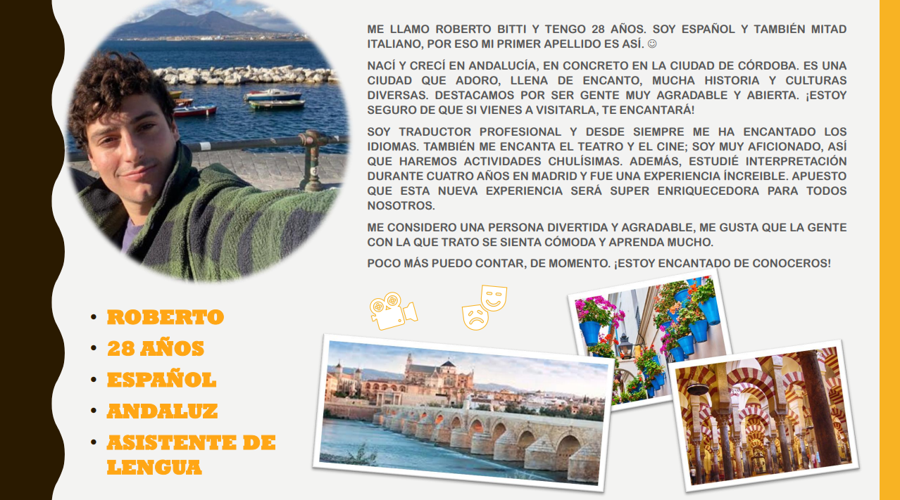 Assistant de langue en espagnol pour 2025-26: Présentation de Roberto.